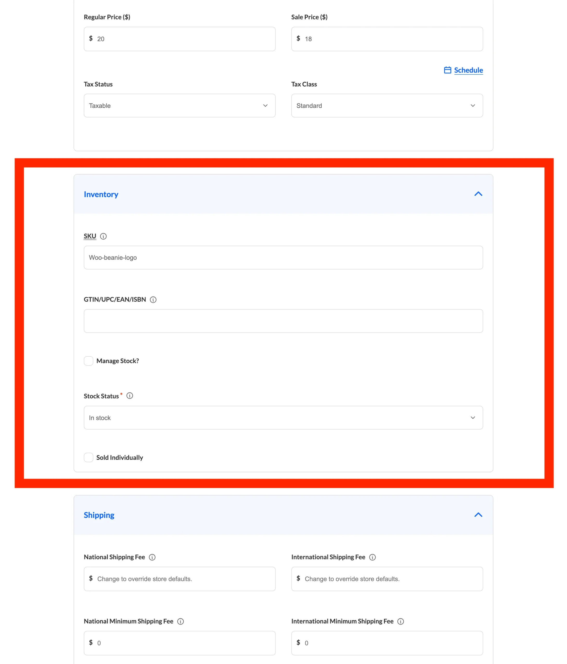 Inventory fields can be set to hide or require. This will determine which fields the vendors can use.