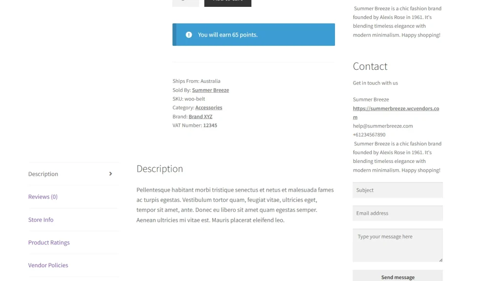 Single Product Page: The VAT number will appear within the product details section (meta area) whenever it is available for that specific vendor.